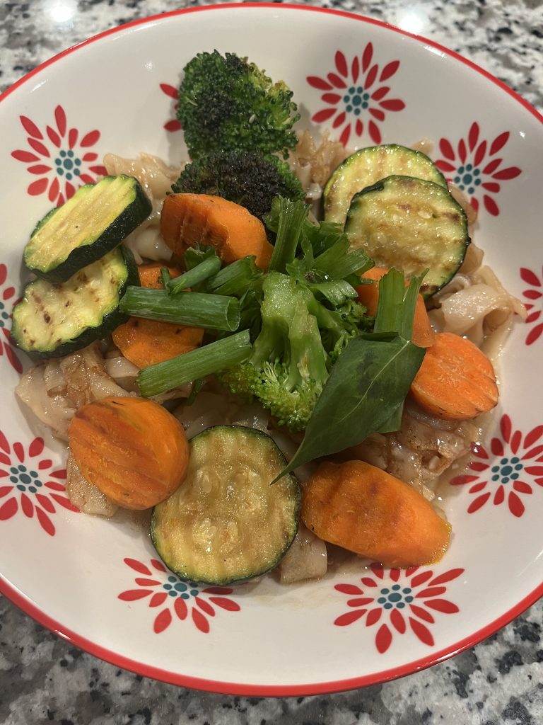 - Plate the noodles and top with as much vegetables as desired